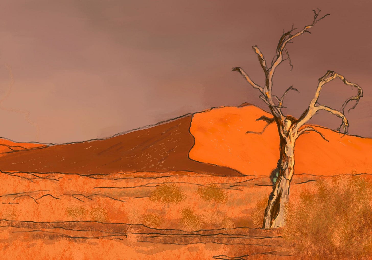 The dead leaves rot away in a pile on the ground and thorns pierce through the bark. Spiders weave webs between the bare branches and bats circle around it at night. Rats gnaw at the roots. Snakes eat them and lie among the same roots, digesting their bodies. A crow perches on the topmost branch at noon, a white owl at midnight.